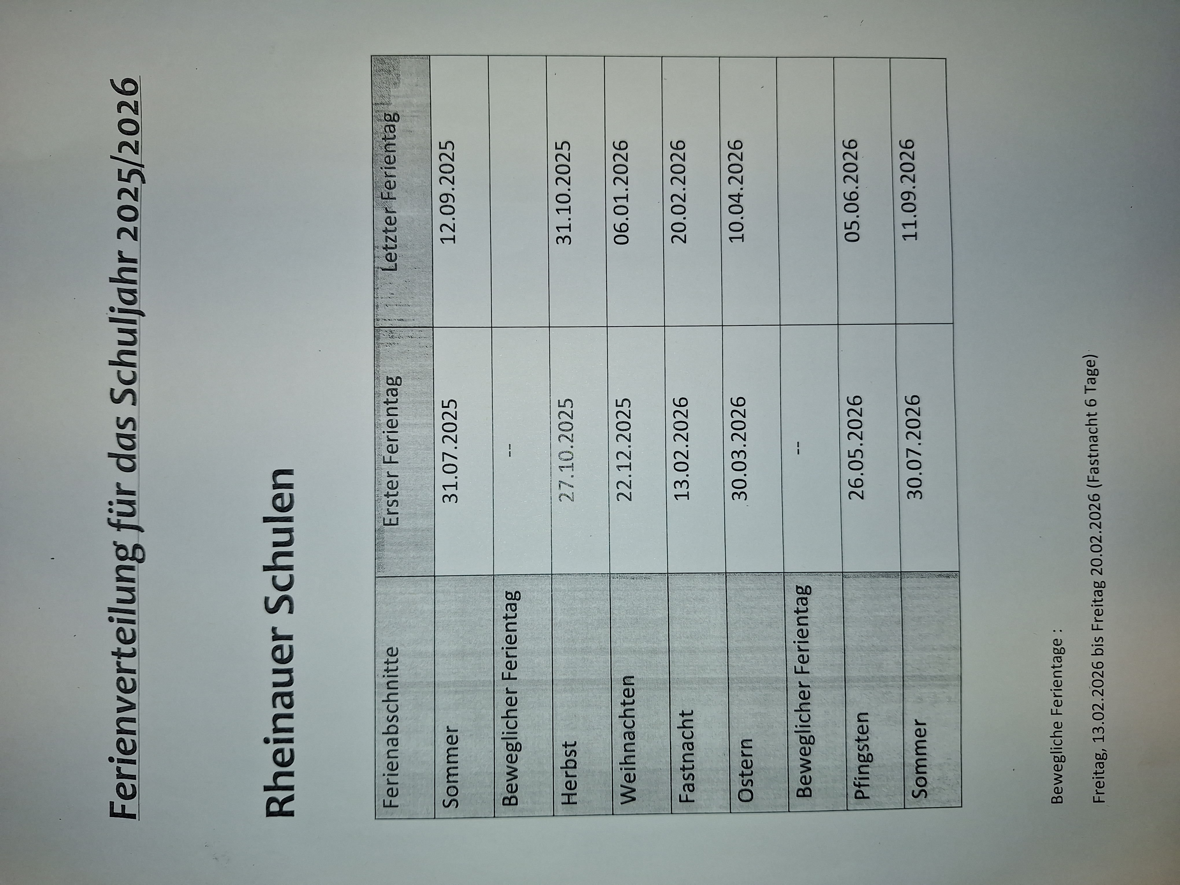 Ferienplanung Schuljahr 2025/2026